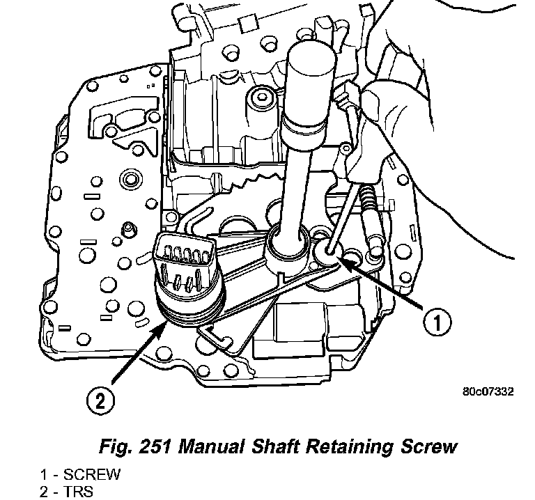 4. Remove manual shaft/TRS retaining screw (Fig. 251).
