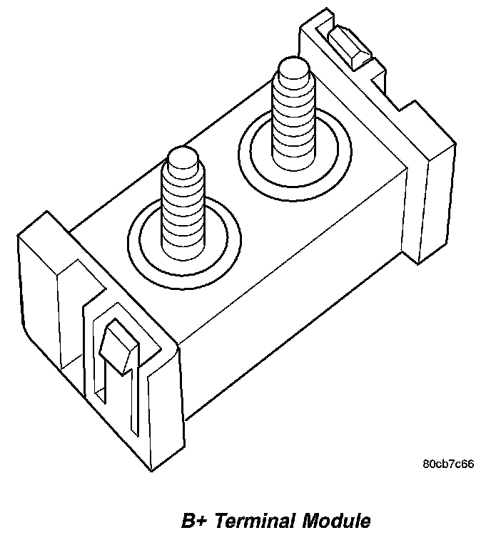 2. From the top of the PDC housing, use a small screwdriver or a terminal pick tool (Special Tool Kit 6680) to release the two latches that secure the B(+) terminal module in the PDC.