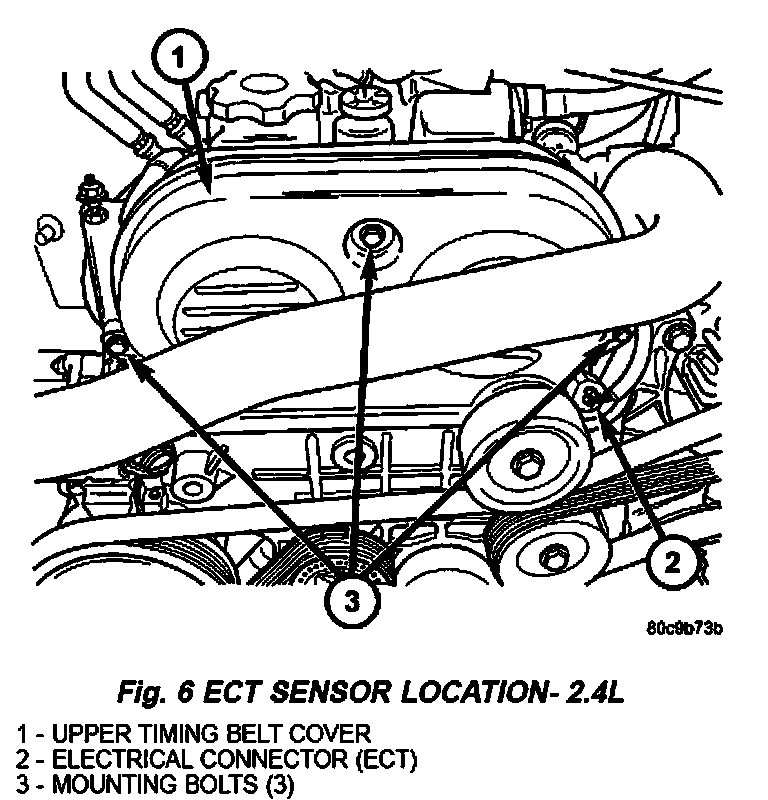 ENGINE COOLANT TEMPERATURE SENSORWARNING: HOT, PRESSURIZED COOLANT CAN CAUSE INJURY BY SCALDING. COOLING SYSTEM MUST BE PARTIALLY DRAINED BEFORE REMOVING ECT ENGINE COOLANT TEMPERATURE SENSOR.