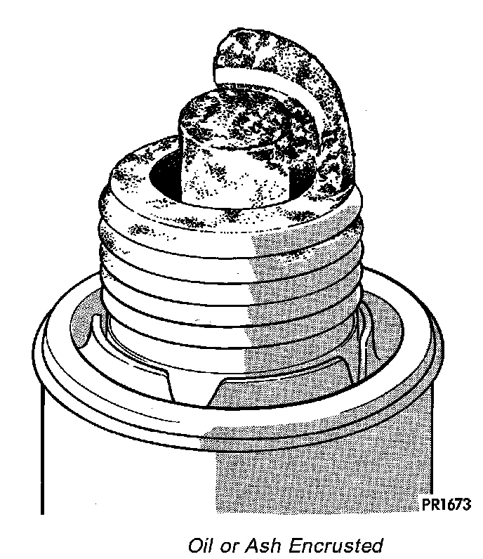 If one or more spark plugs are oil or oil ash encrusted, evaluate engine condition for the cause of oil entry into that particular combustion chamber.