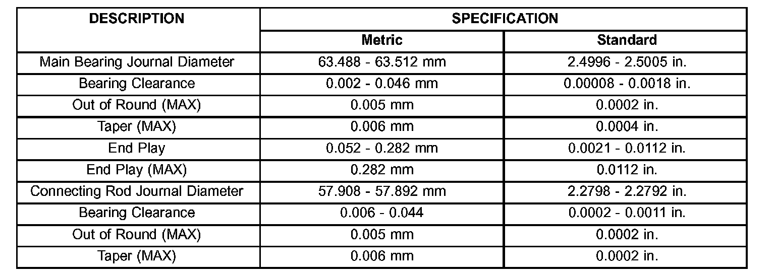 Home >> Jeep >> 2006 >> Commander 2WD V6-3.7L VIN K >> Repair and Diagnosis >> Specifications >> Mechanical Specifications >> Engine >> System Specifications >> Service Specifications
