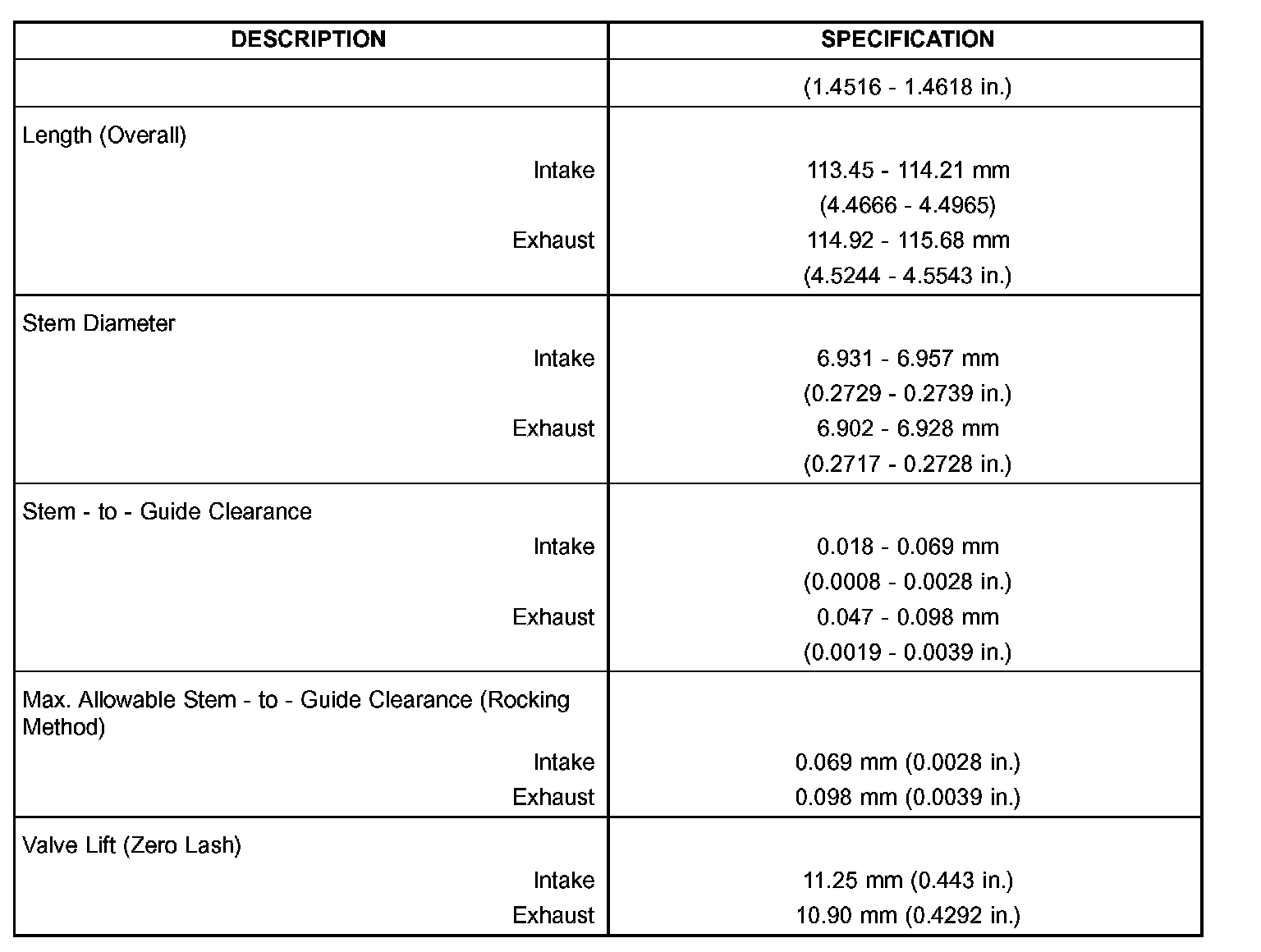 VALVE TIMING: