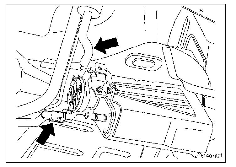 19. Install the vapor canister (1) and install the lower canister nut (2).