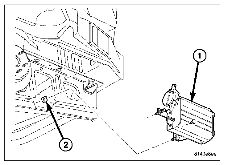 9. Remove the lower canister nut (2) and remove the vapor canister (1).