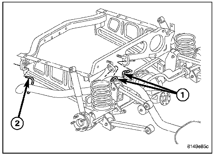 19. Separate the exhaust hangers (1 and 2) and support the exhaust.
