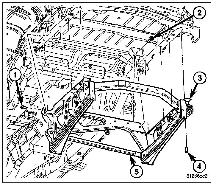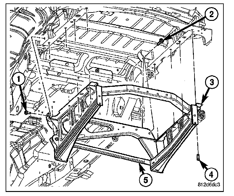 20. Using a grease pencil or equivalent, mark the location of the body cradle (3) on the underbody to aid installation.