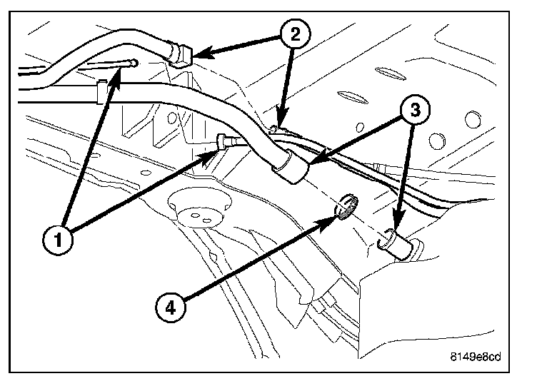 15. Loosen the clamp (4) and disconnect the fuel filler hose (3).