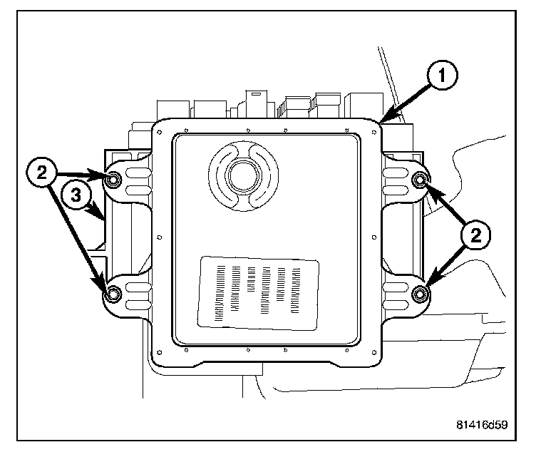 3. Remove the four fasteners (2) securing the Front Control Module (FCM) (1) to the IPM (3).