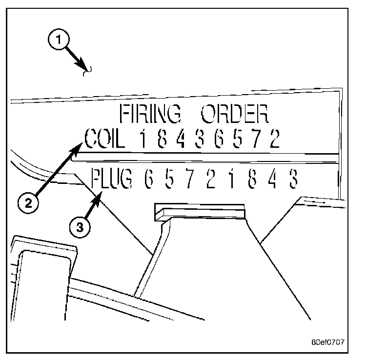 These numbers (2) and (3) can also be found on the top of the intake manifold (1) to the right of the throttle body.
