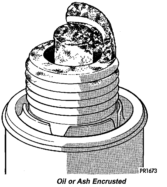 If one or more spark plugs are oil or oil ash encrusted, evaluate engine condition for the cause of oil entry into that particular combustion chamber.