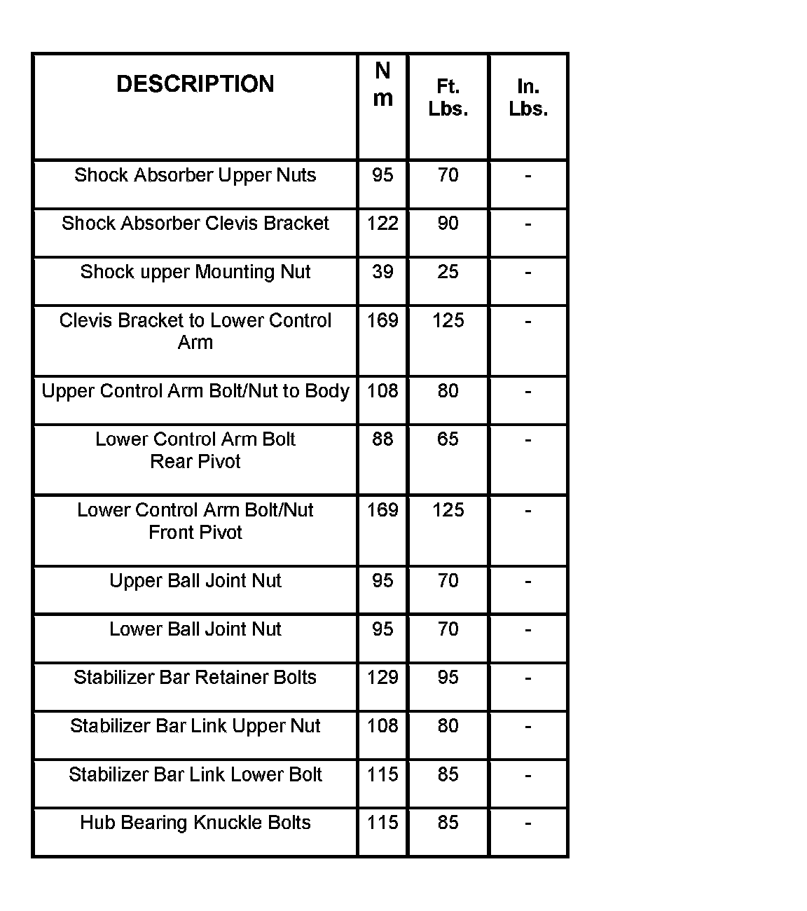 Torque Specifications: