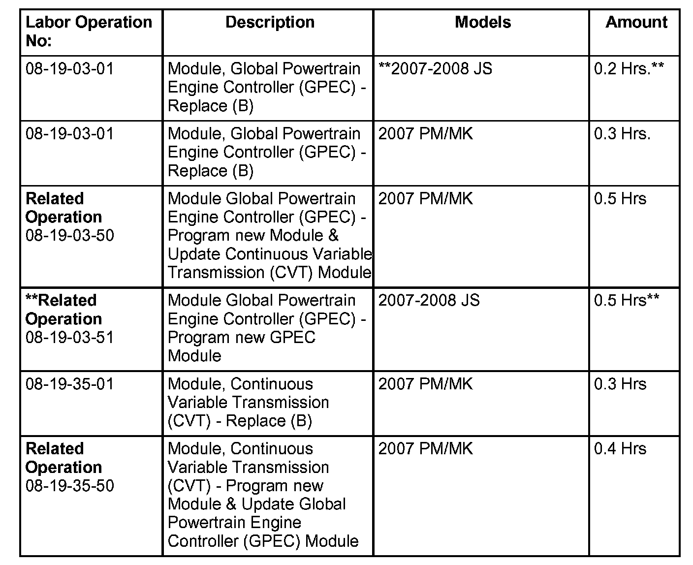 ^ **If the vehicle is a PM/MK with a CVT transmission, follow PCM AND TCM Repair Procedures below.
