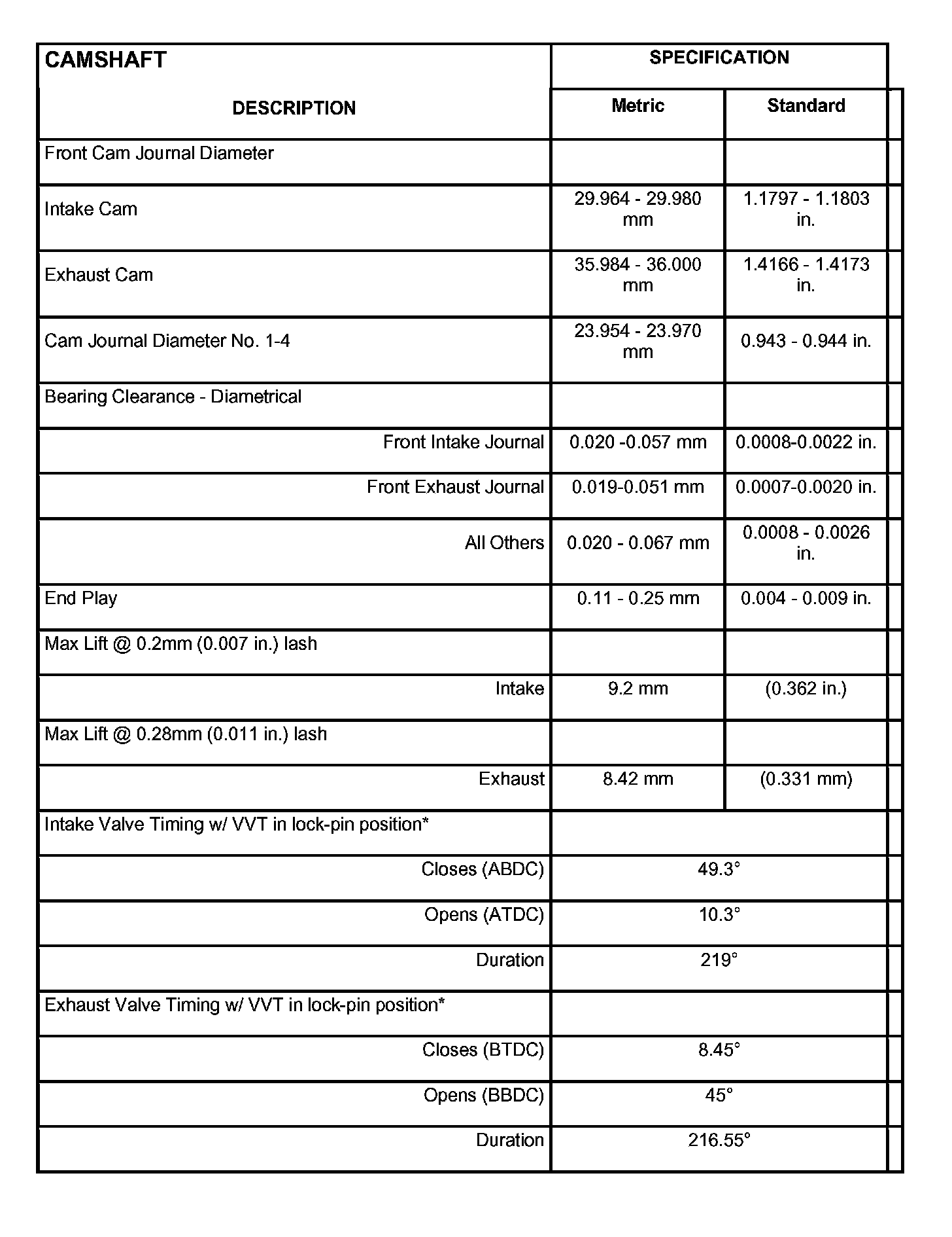 Cylinder Head Camshaft Bearing Bore Diameter