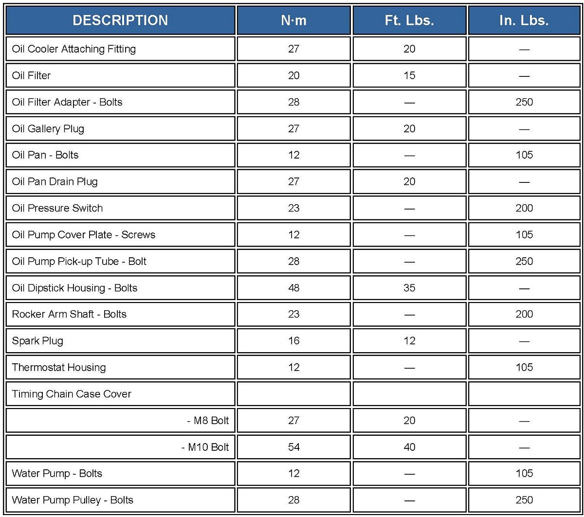 Engine Torque Specifications