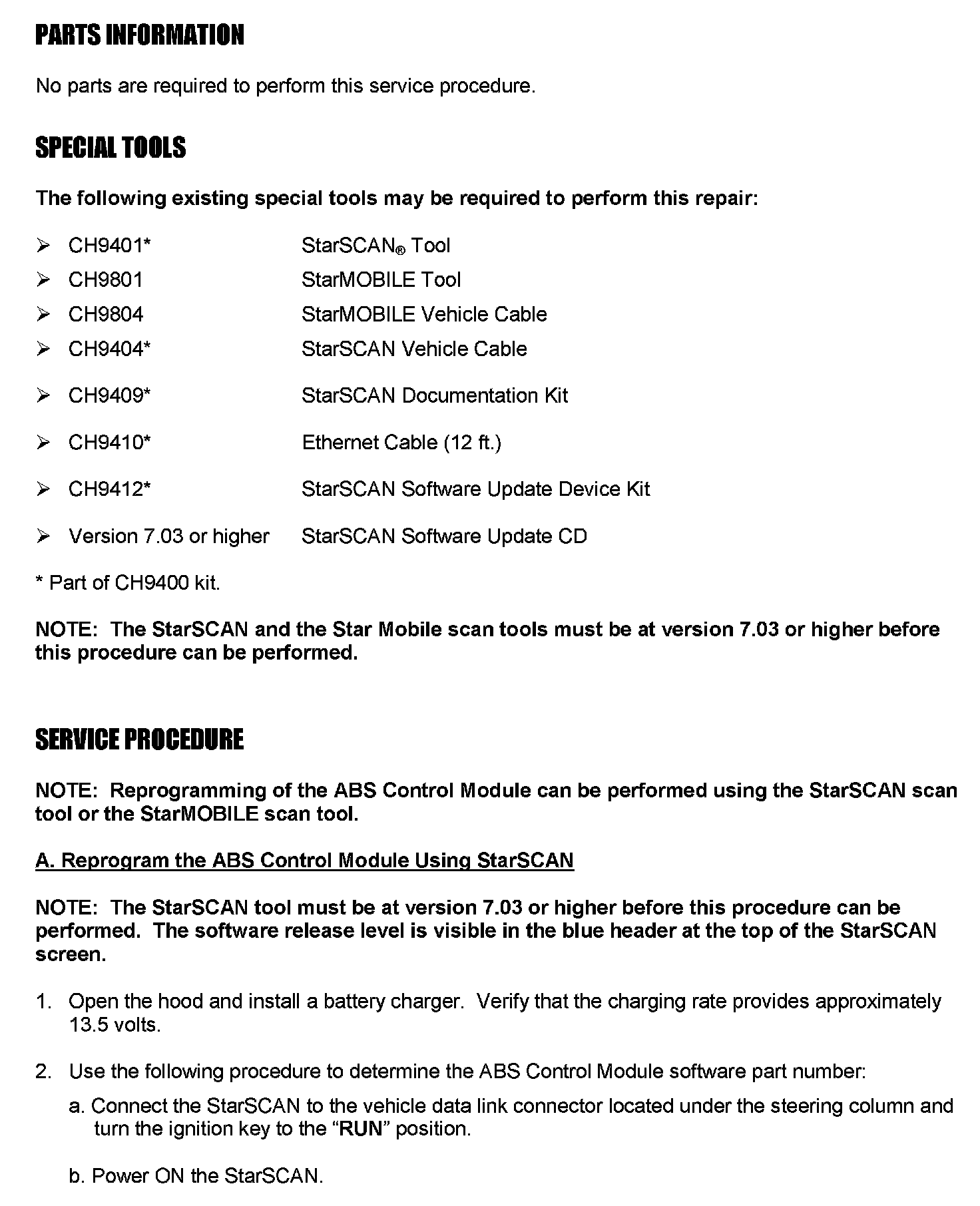 ^ To correct this condition, the ABS control module must be reprogrammed (flashed).