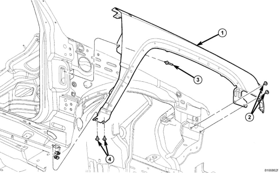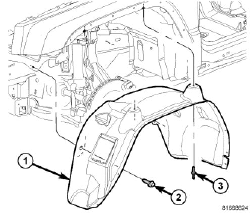 1. Position fender (2) on body.