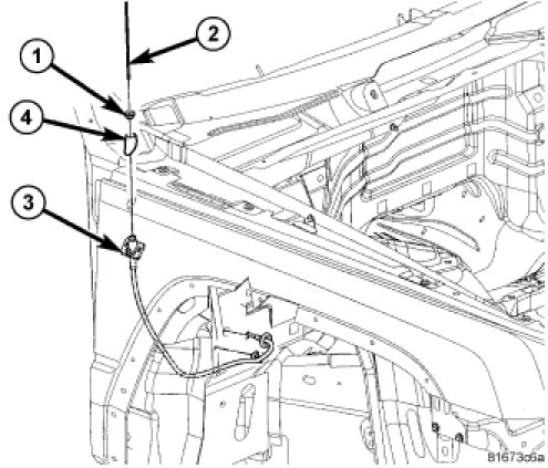 1. Position the antenna body (3) through the mounting hole in the top of the fender.