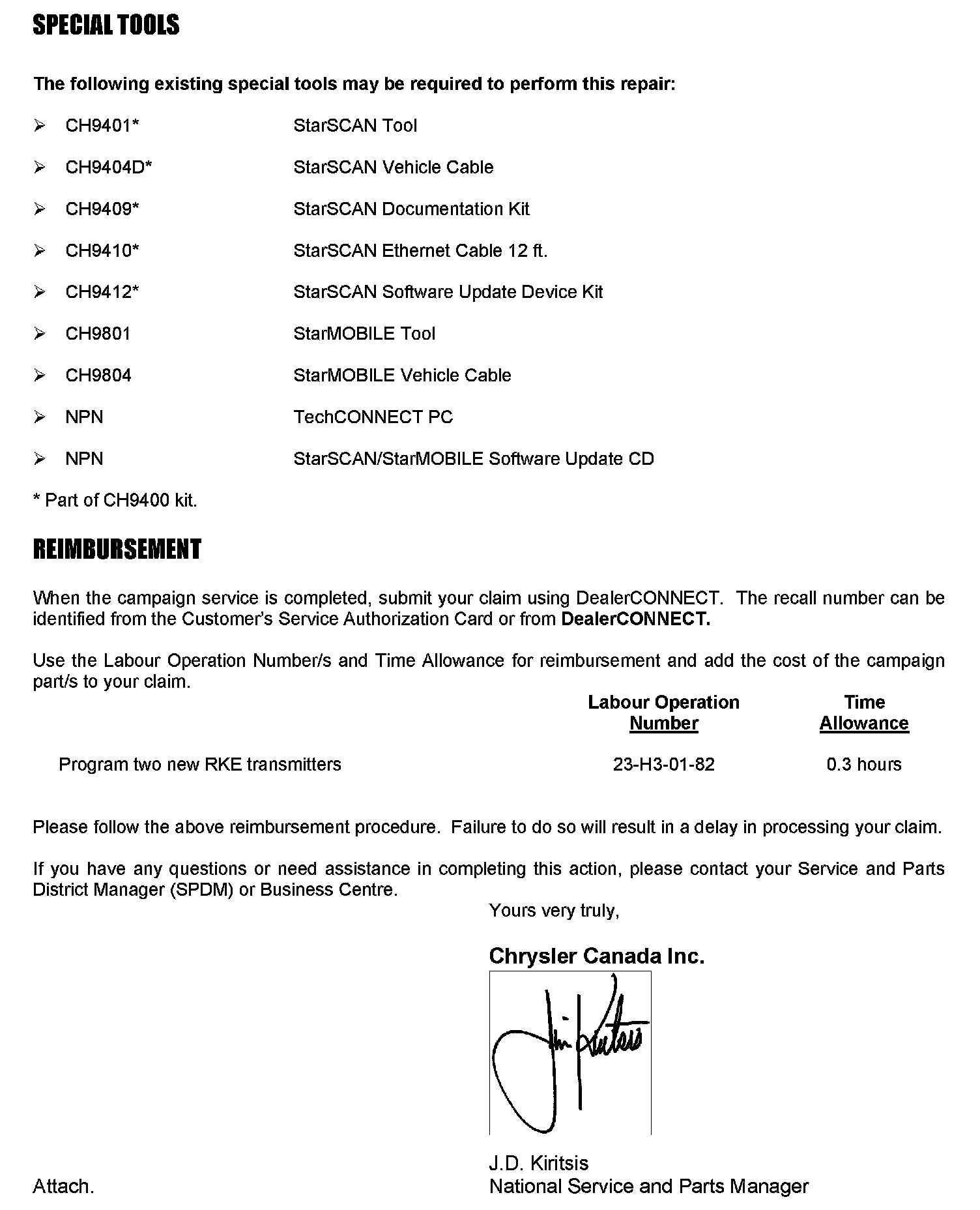 If you have any questions or need assistance in completing this action, please contact your Service and Parts District Manager.