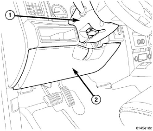8. Install the steering column opening cover (2). Install the screw and firmly push the top of the panel inward to engage the top retaining clips.