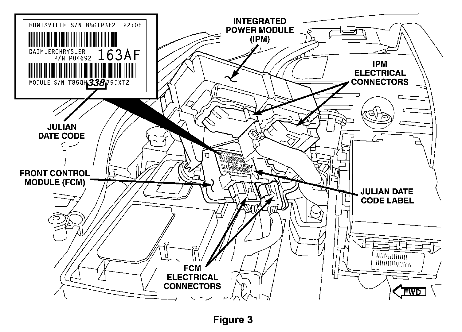 8. Separate the original FCM from the IPM by pulling the two straight away from each other to disengage the electrical connector (Figure 5).