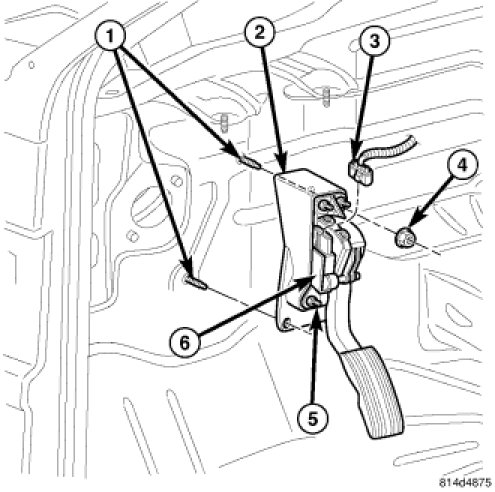 The Accelerator Pedal Position Sensor (APPS) (6) is attached to the accelerator pedal assembly under the instrument panel.
