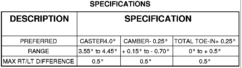 NOTE: Specifications are in degrees.