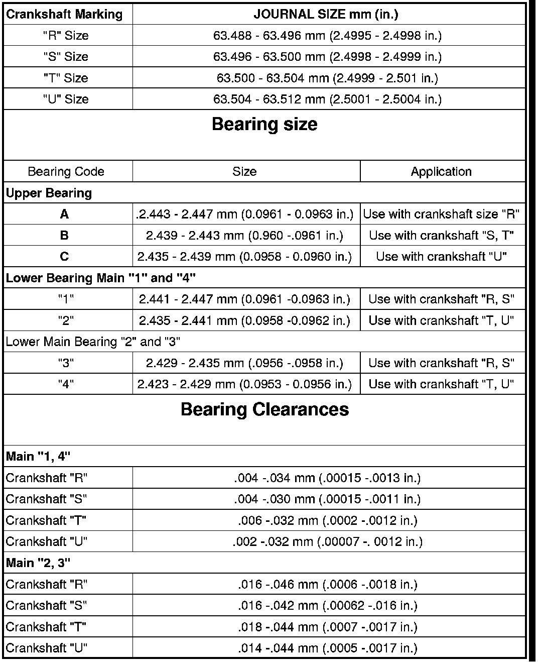 1. Service main bearings are available in four grades. The chart below identifies the four service grades available.