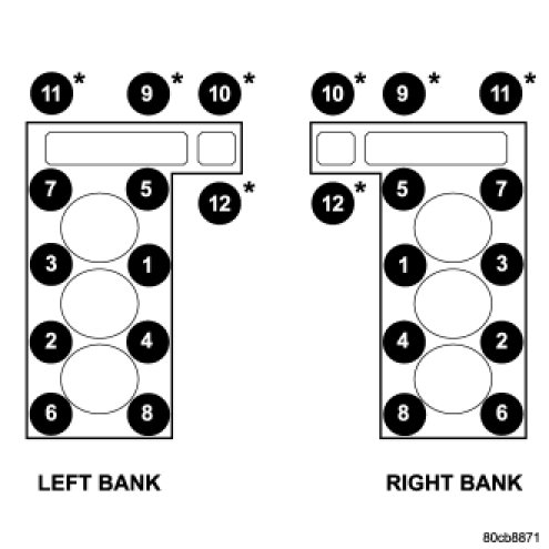 NOTE: The four smaller cylinder head mounting bolts require sealant to be added to them before installing. Failure to do so may cause leaks. The locations are identified with an *.