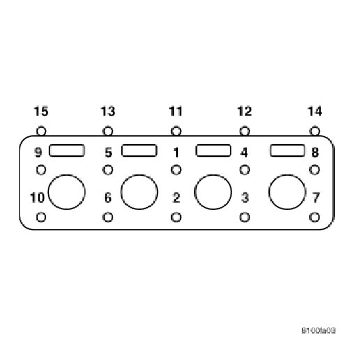 - Step 2 - Tighten M12 cylinder head bolts, in sequence, to 54 Nm (40 ft. lbs.) and verify M8 bolts to 20 Nm (15 ft. lbs.).