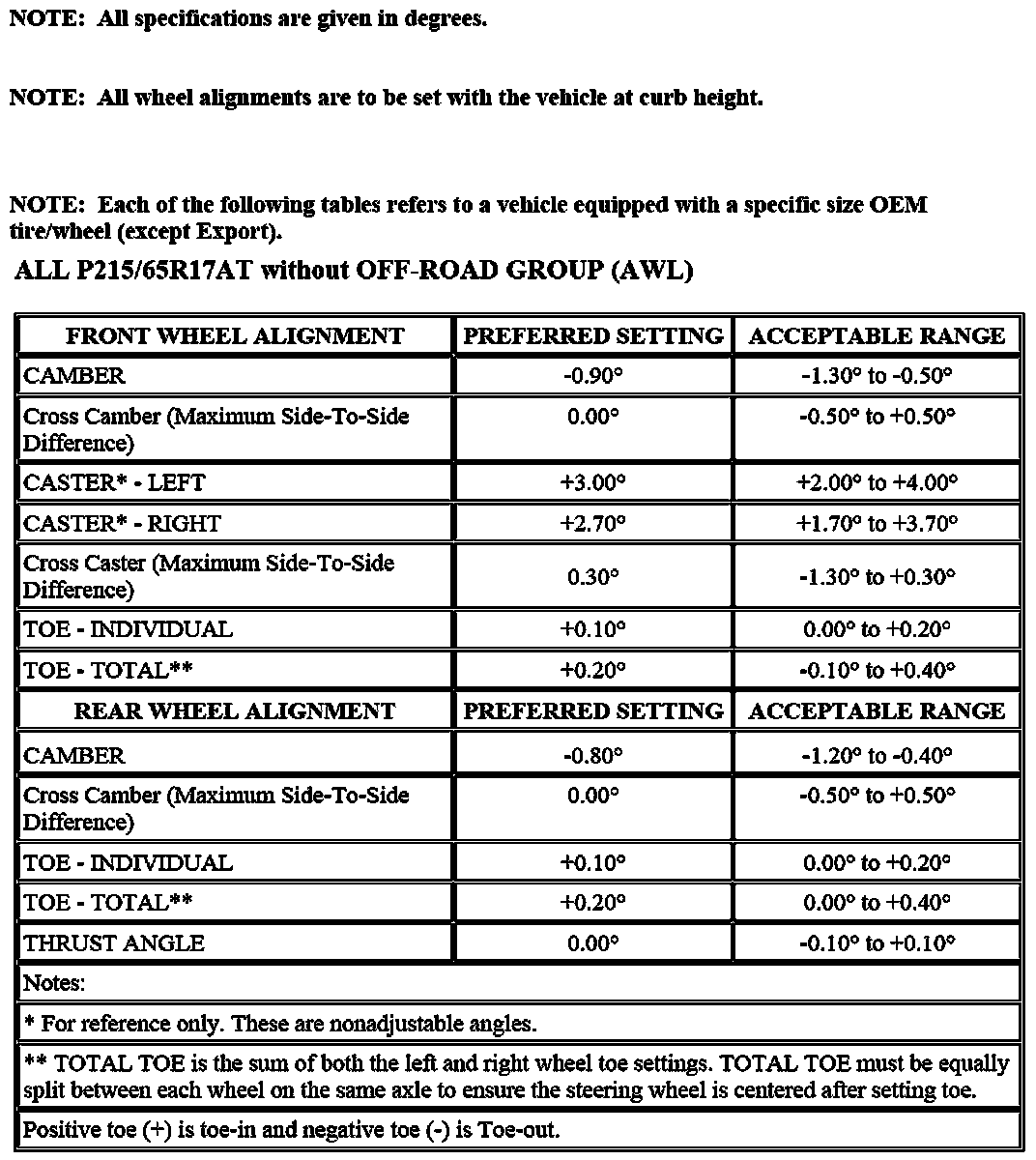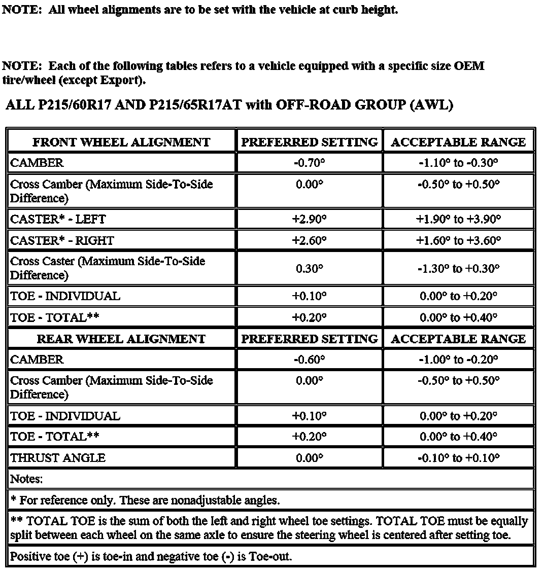 Wheel Alignment Specifications