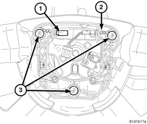 5. Install horn switch mounting screws (3) and tighten screws to 8 Nm (71 ins. lbs.).