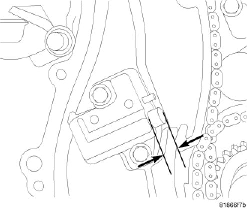 2. Measure the distance from the tensioner body and the edge of the chain guide as shown.