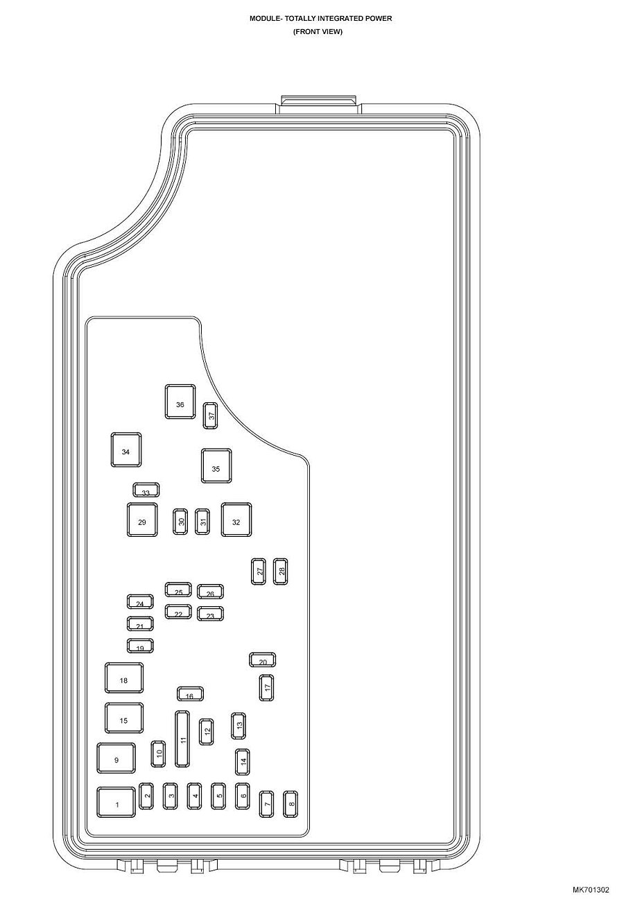 An Integrated Power Module is located in the engine compartment near the air cleaner assembly. This center contains cartridge fuses and mini fuses. A label that identifies each component may be printed on the inside of the cover.