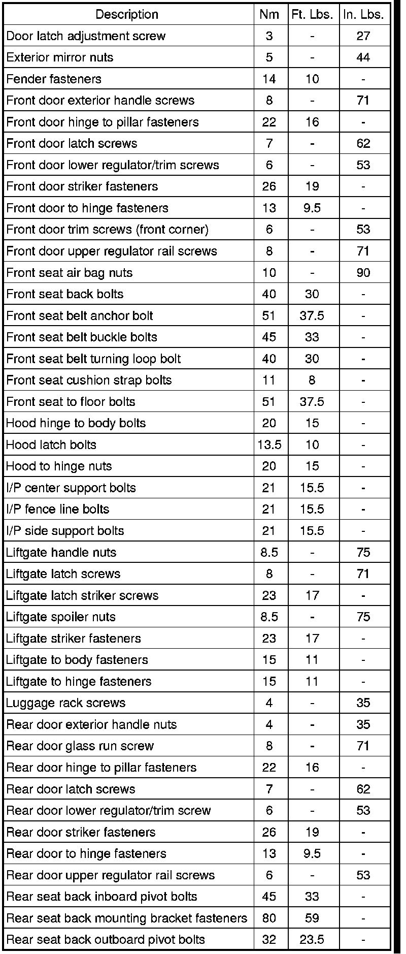 Body Specifications