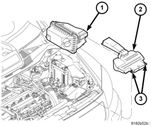 3. Align the ignition switch (1) with the detent pin (3), and retaining tabs (2) located on the lock cylinder housing. Carefully install the module, snapping it into place over the retaining tabs. Make sure the ignition switch is fully seated.
