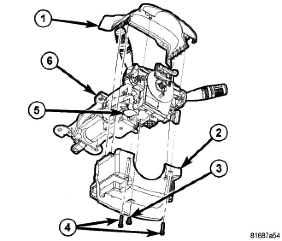 6. Install upper (1) and lower (2) steering column shrouds,Installation.