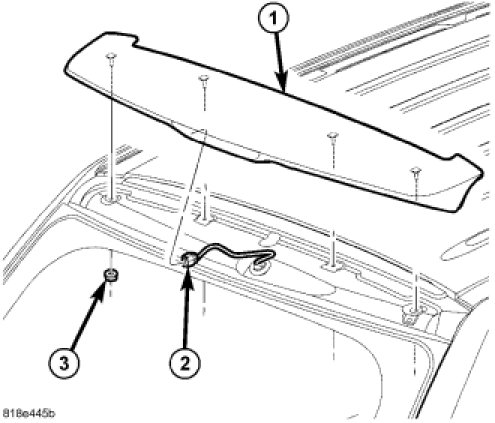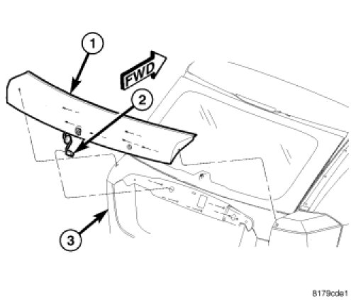 8. Install the liftgate spoiler (1), Liftgate Spoiler - Installation.