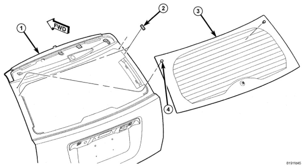 Home >> Jeep >> 2008 >> Compass 2WD L4-2.4L >> Repair and Diagnosis >> Windows and Glass >> Windows >> Window Glass >> Liftgate Window Glass >> Service and Repair >> Installation