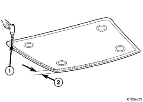 2. Level old bead of liftgate opening adhesive (1) to a thickness of approximately 1 mm (0.04 in.) and remove loose adhesive.