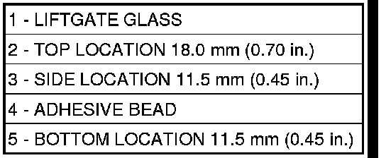 CAUTION: Always apply bead of adhesive to the liftgate glass. Always install the liftgate glass within 5 minutes after applying adhesive.