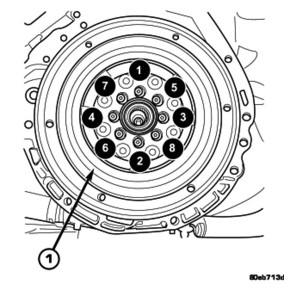 Install and torque the flywheel-to-crankshaft bolts to 95 Nm (70 ft.lbs.).