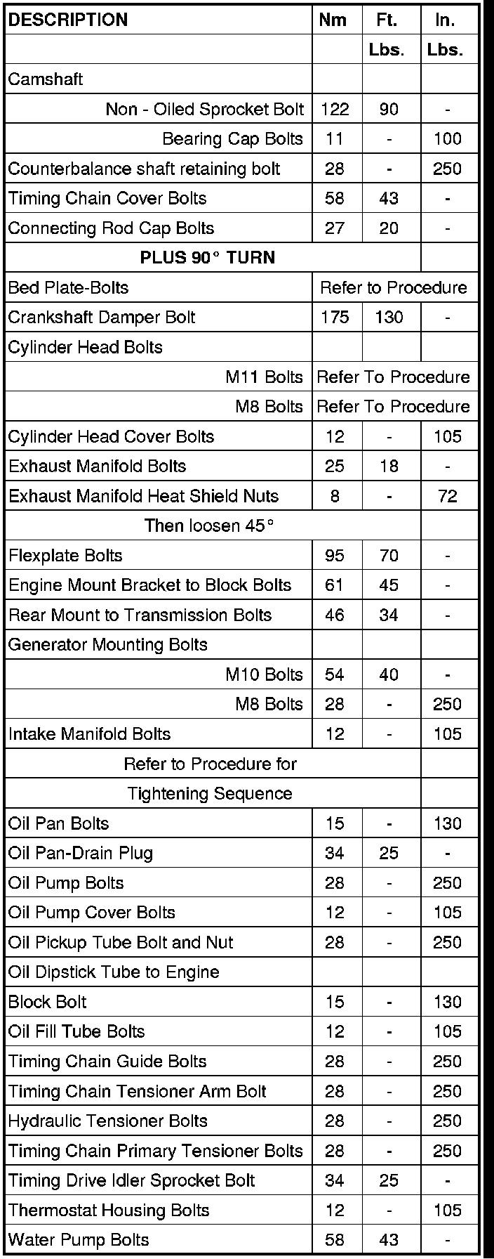 Engine Torque Specifications