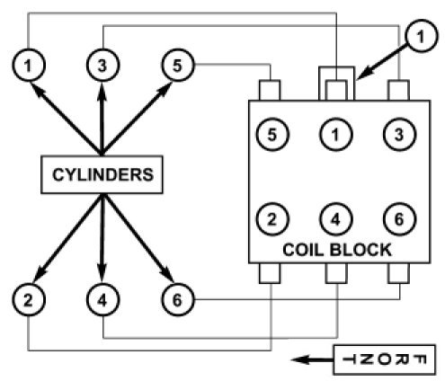 The firing order is 1-2-3-4-5-6. The left cylinder bank is numbered 2, 4, and 6. The right cylinder bank is numbered 1, 3, and 5.