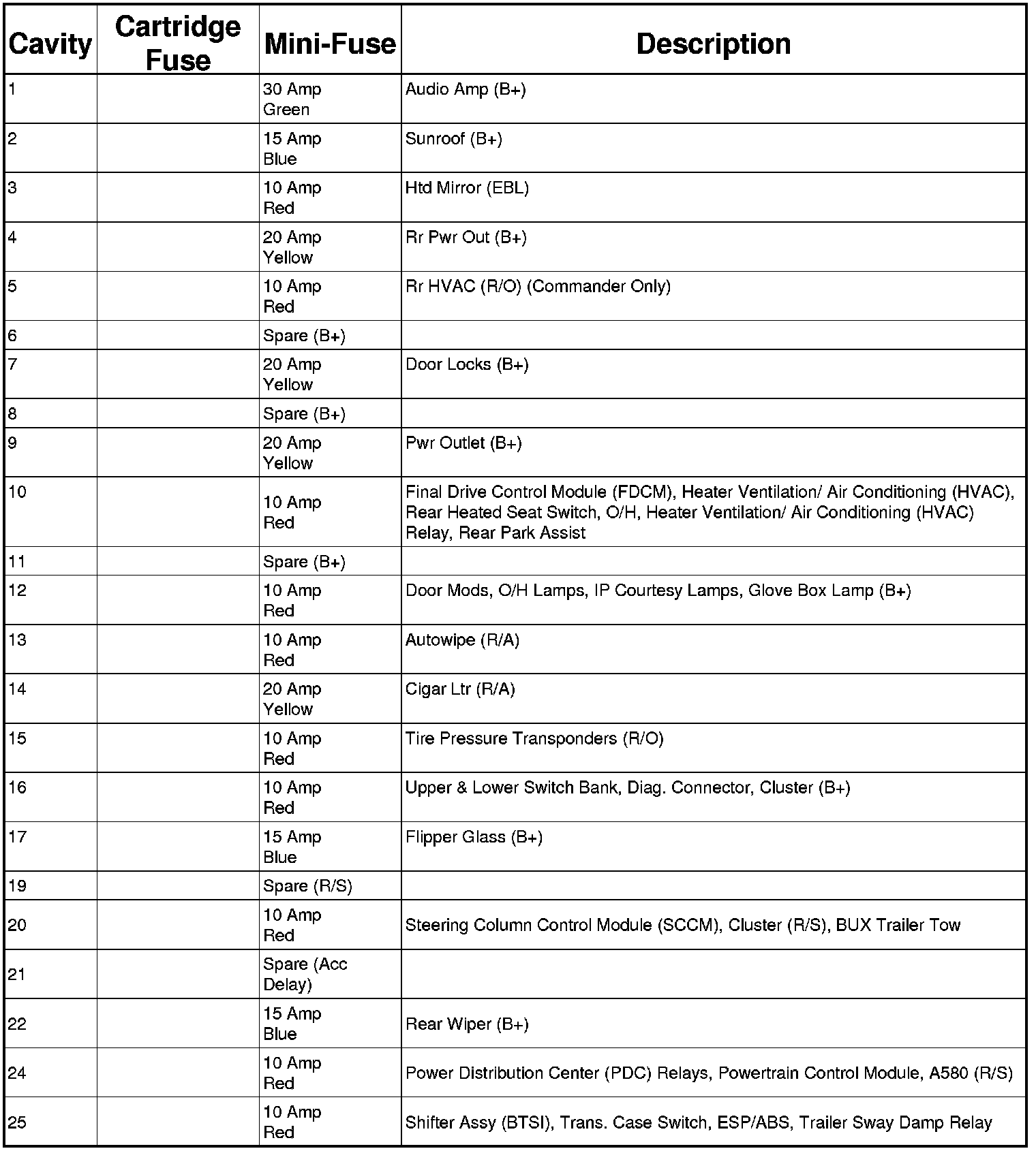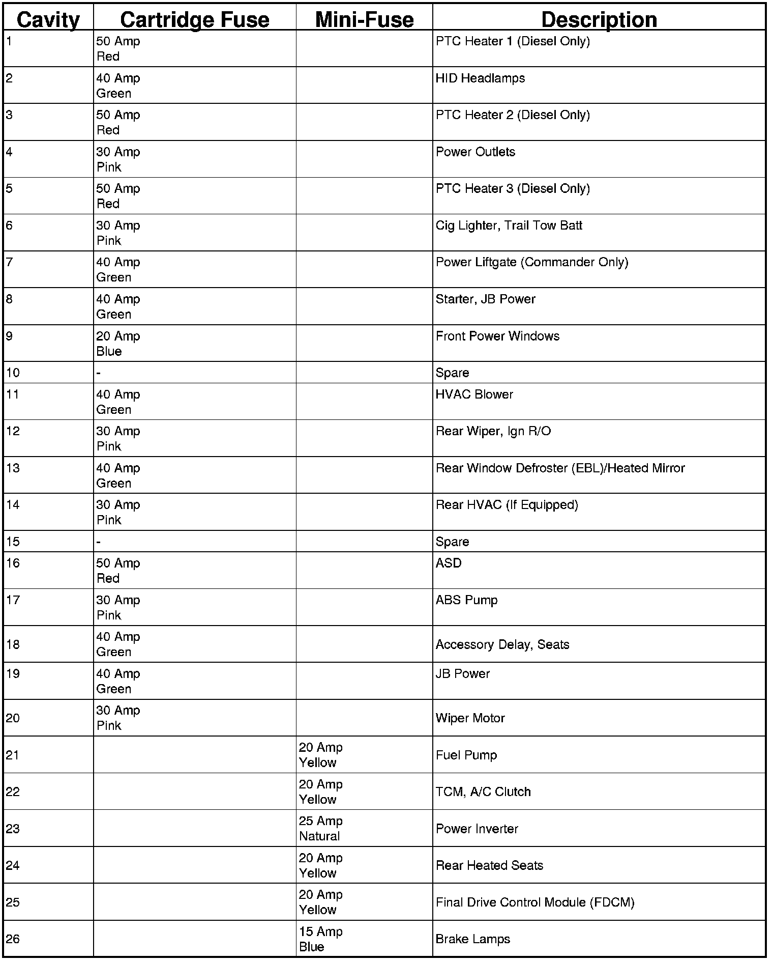 Home >> Jeep >> 2009 >> Commander 2WD V6-3.7L >> Repair and Diagnosis >> Power and Ground Distribution >> Fuse >> Locations