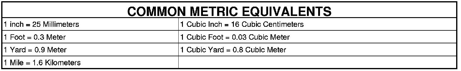 The following chart will assist in converting metric units to equivalent English and SAE units, or vise versa.