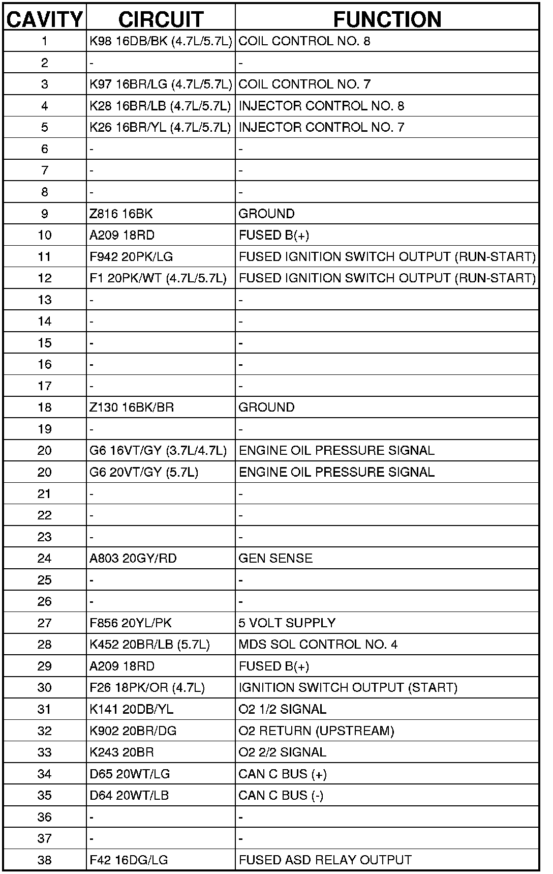 Powertrain Control Module C1 (Injector Side) 38 Way