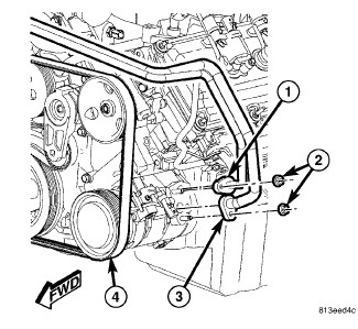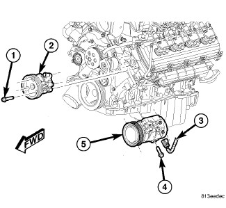 3. Install the bolts (4) that secure the A/C compressor to the engine. Tighten the bolts to 55 Nm (41 ft. lbs.).