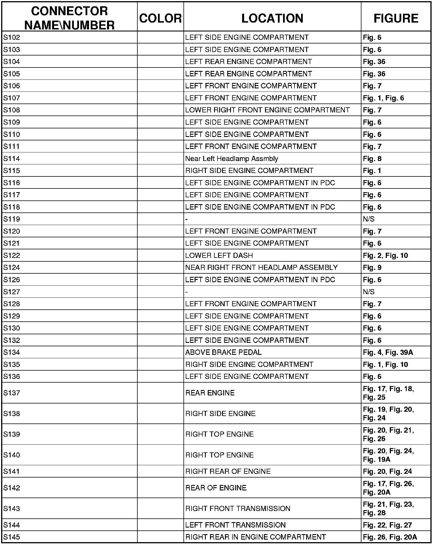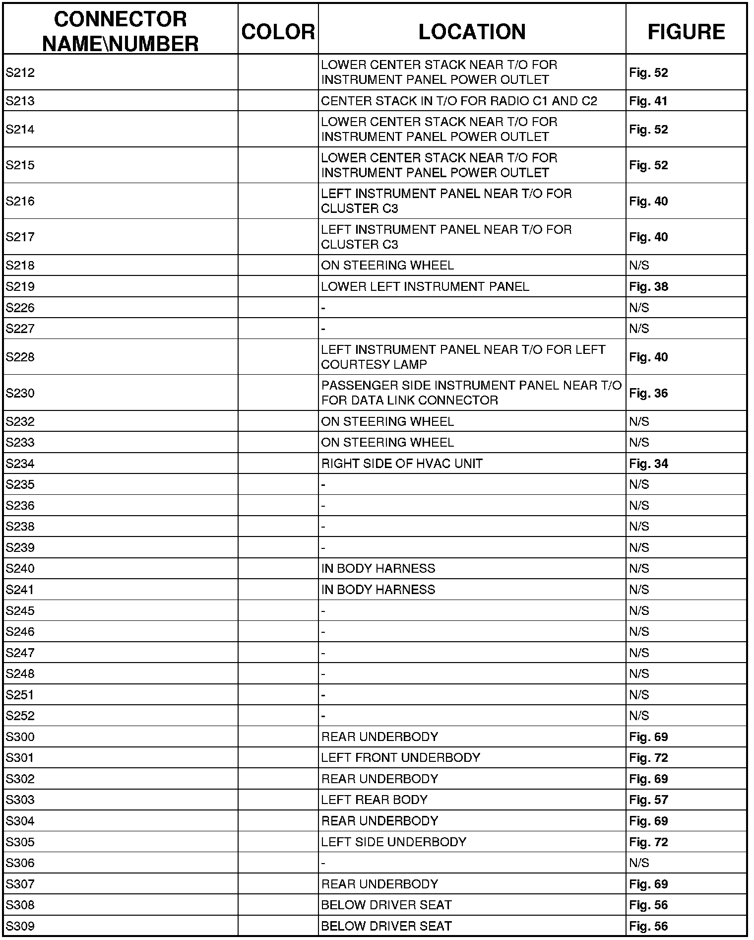 The abbreviation N/S means Not Shown in the illustrations.
