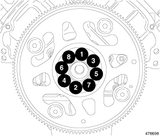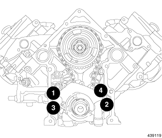 Rotate main cap bolts an additional 90° in the sequence shown.