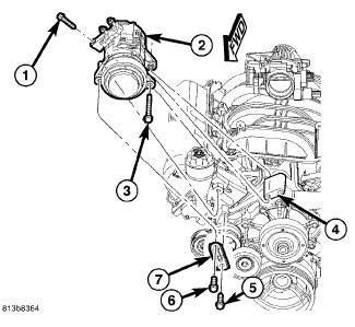 2. Position the A/C compressor onto the accessory mounting bracket (4).